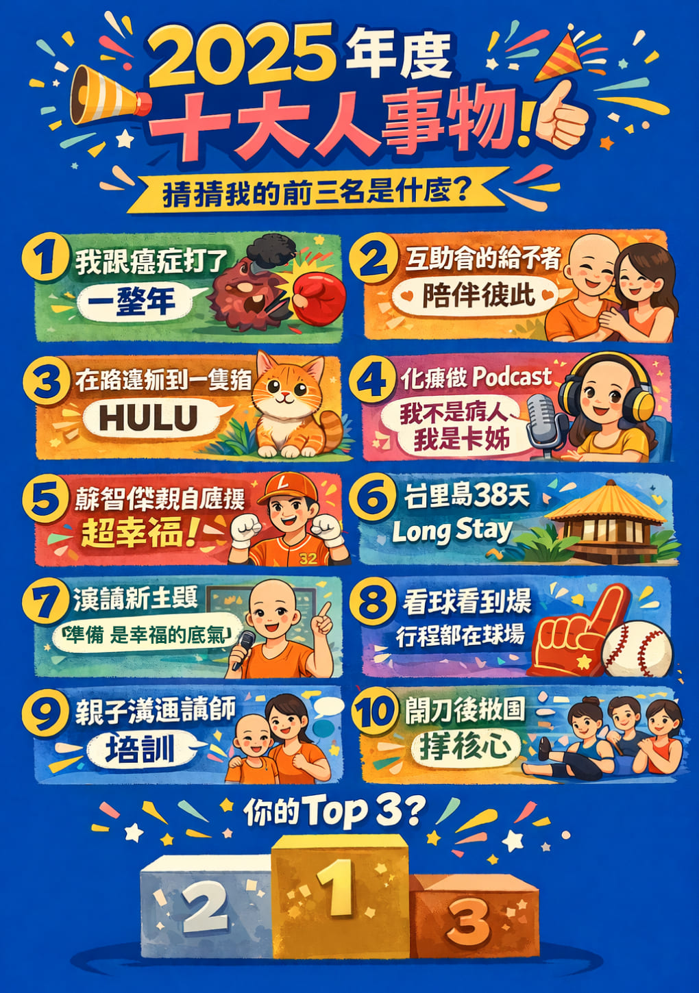 2025年這一年是我工作以來走得最慢的一年,以前都有日子過好快,今年因為得了癌症、做了化療,永遠都是在等待下一次治療、等待病床、等待著時間快快到來,但或許是與最多人連結的一年。