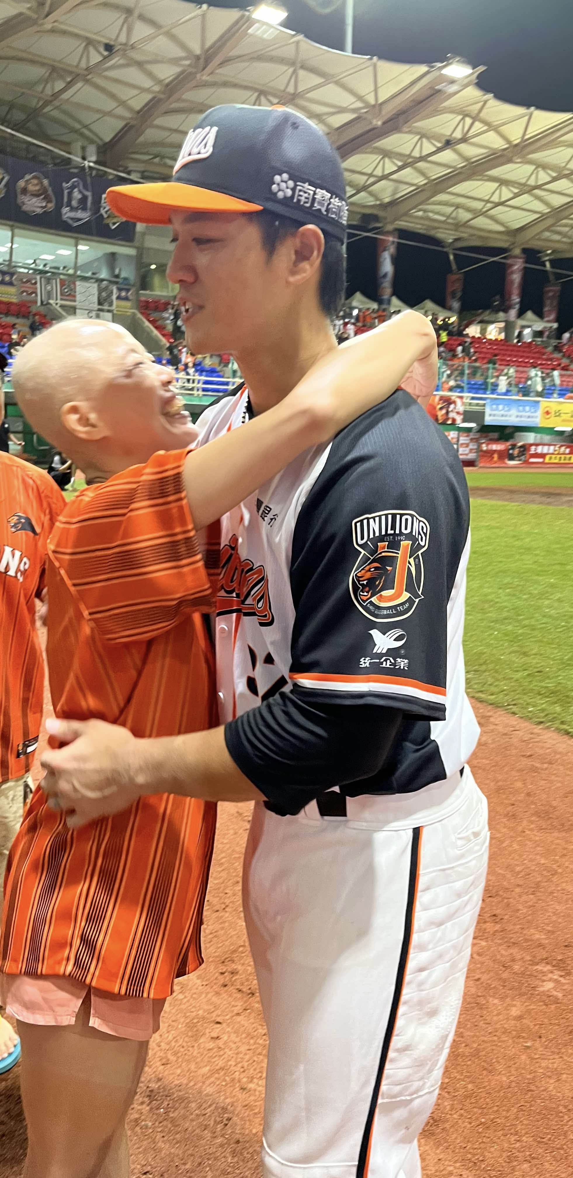 在後來每一次在賽前、賽後,他也總是會一眼從光亮的頭認出是我,和我揮個手、點個頭,或在休息室內跟我說:「你要不是沒頭髮,完全都不像在做化療」,甚至很客氣的說我的勵志讓他在球場上更有動力,真的是暖男一枚。